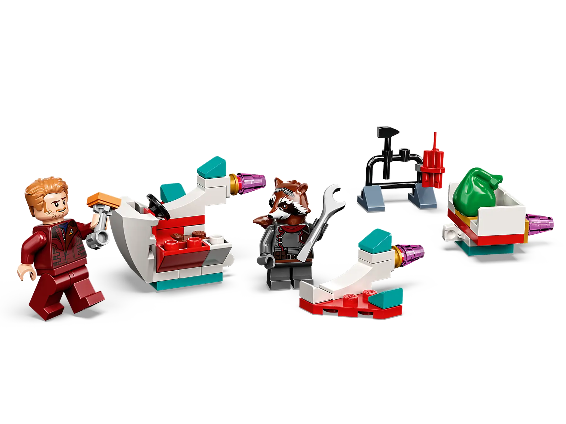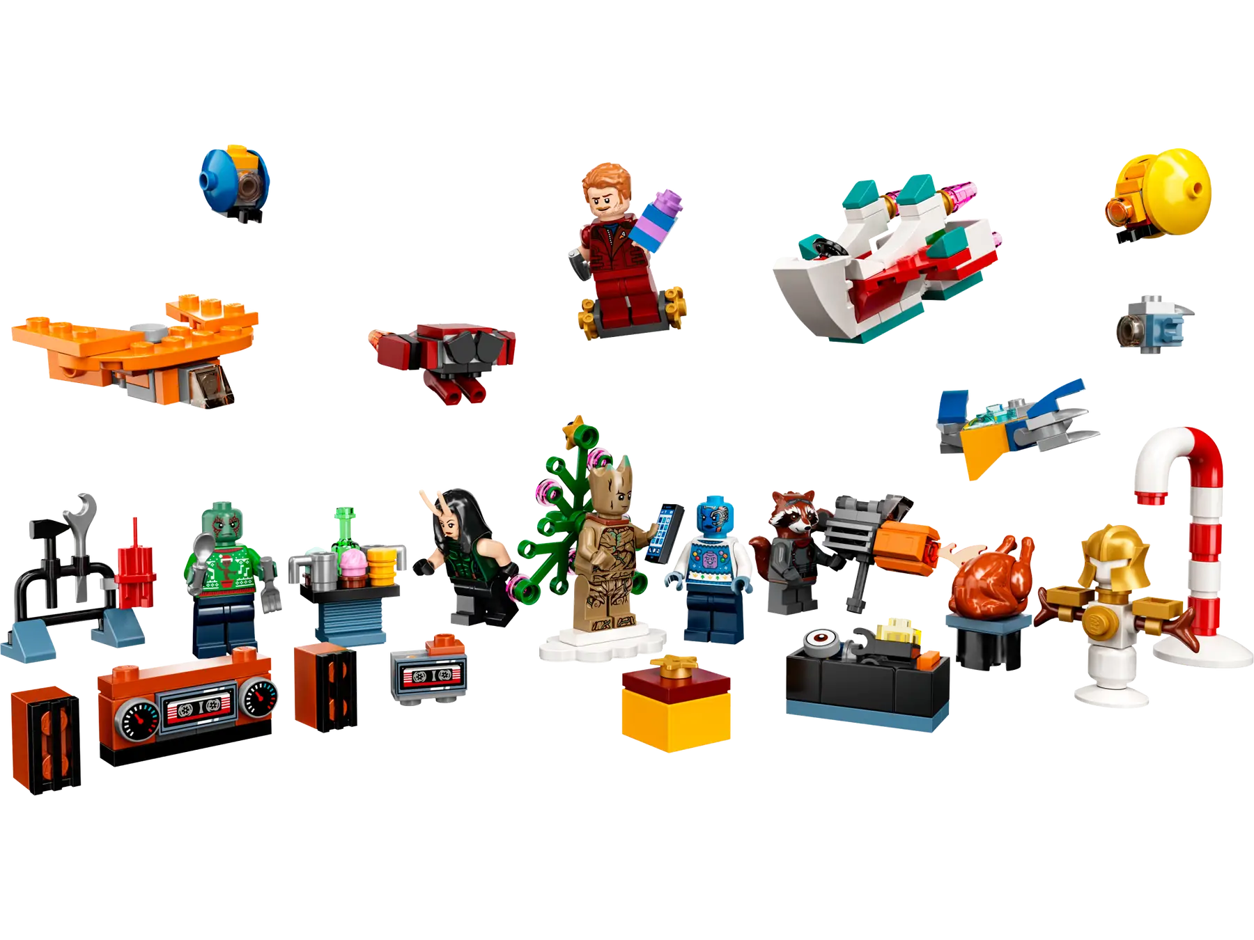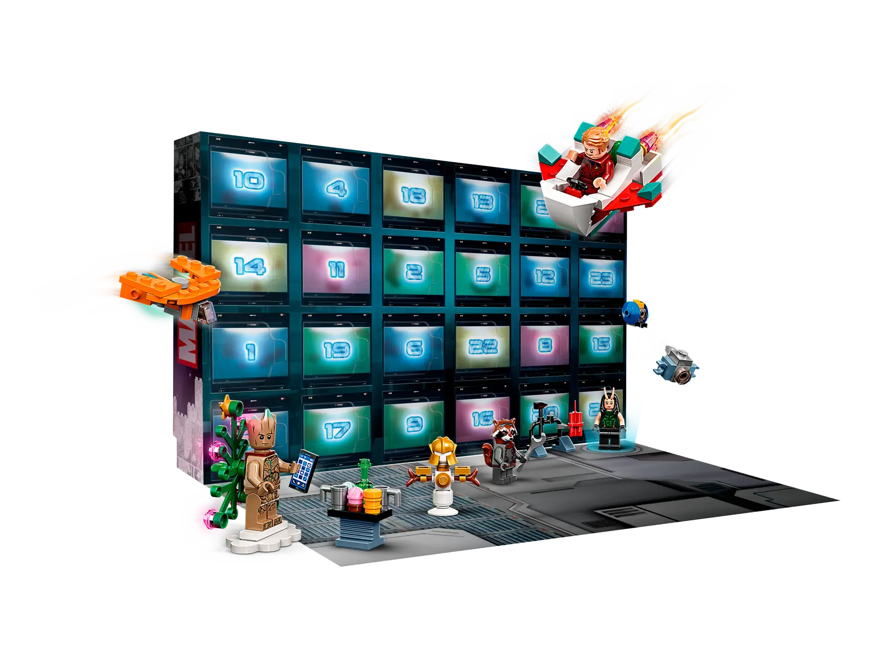 Dietro ognuna delle 24 porte del calendario c’è un regalo giornaliero che i bambini potranno scoprire durante il mese di dicembre che precede il Natale. Ci sono 6 minifigure, tra cui Star-Lord, Rocket, Groot e Mantis, oltre a mini costruzioni e accessori che i bambini riconosceranno come ispirati al Marvel Cinematic Universe e alla serie TV originale Disney+. C’è un drone, un blaster, l’astronave dei Guardiani, un pupazzo di neve con l’armatura di Thanos e altro ancora. Quando il grande giorno si avvicina, i bambini possono mescolare i regali per creare infinite avventure fantasiose da supereroi.